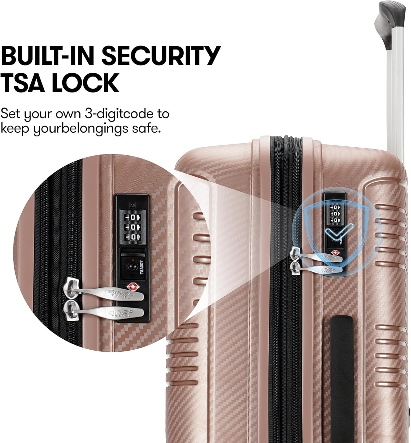 Luggage Sets with Spinner Wheels$TSA Lock:GinzaTravel 3 piece luggage sets include TSA-approved locks for secure travel protection. Opt for our 360° silent universal wheels for a smooth, quiet, and hassle-free luggage experience.