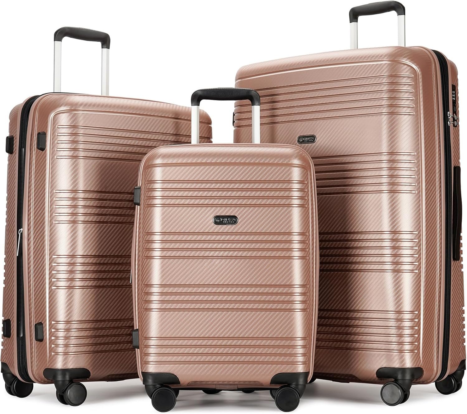 3 Piece Luggage Sets for Women,Durable Expandable Large Suitcases with Spinner Wheels Tsa Lock, 20in/25in/29in,Rose Gold