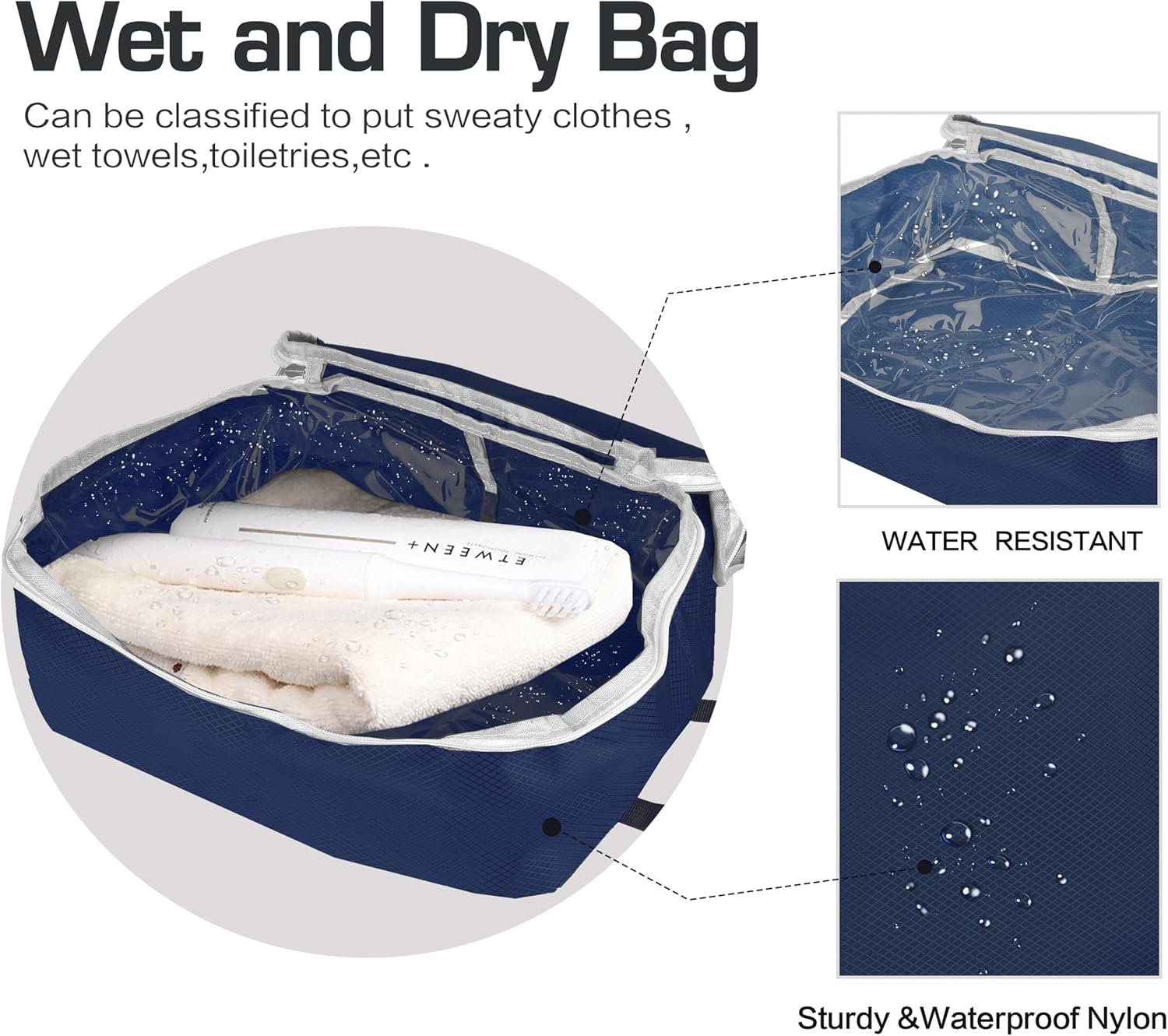 DRY AND WET SEPARATION DESIGN: We have designed a medium size waterproof storage bag in the packaged travel bag, which can store some clothes that have not been dried to keep your suitcase clean.