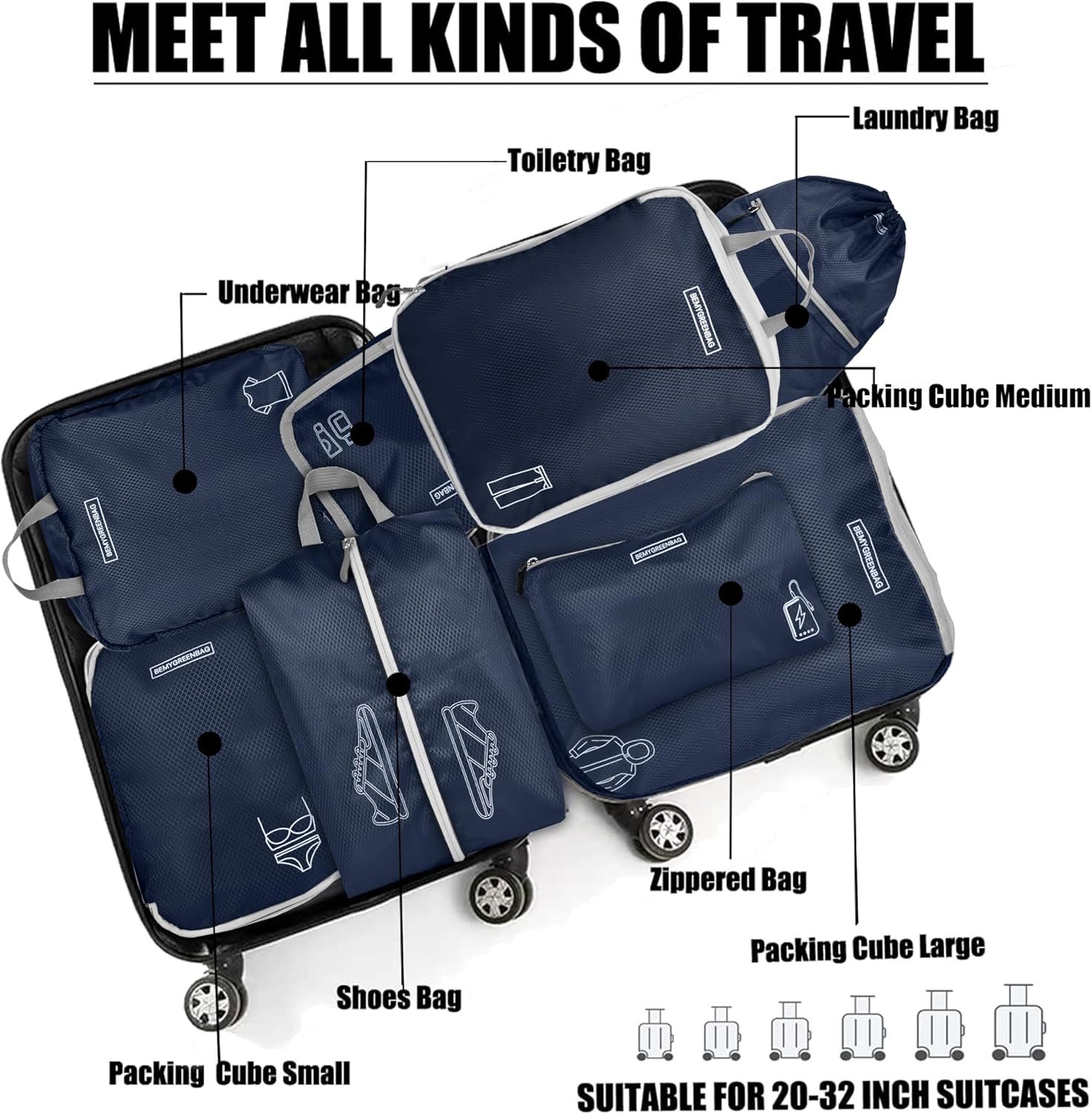DURABLE TRAVEL BAG:The bag group is lightweight, waterproof fabric, wrinkle resistant and strong, each bag has a corresponding pattern structure so that you can easily find the stored items, and double zippers provide quality assurance during compression.