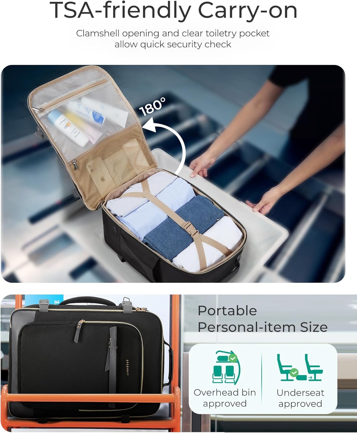 【Fashionably Functional Design】Elevate your travel style with a travel backpack carry on flight approved that blends fashion and functionality. Crafted from sturdy, scratch-resistant materials, this women’s suitcase for travel stands out for its durability and chic appearance, making it perfect for modern female travelers who value both style and substance