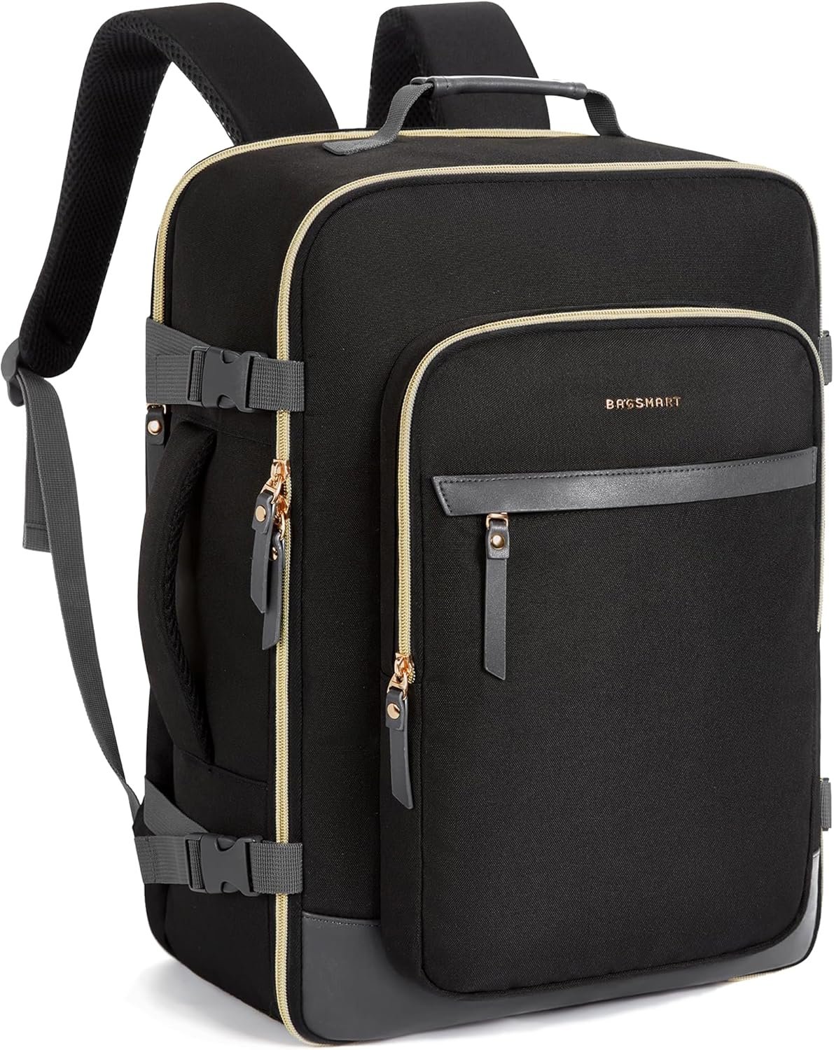BAGSMART Travel Backpack for Women, Large Personal Item Travel Bag, 40L Airline Approved Carry on Backpack Fits 17.3 Inch Laptop, TSA Approved Luggage, Water Resistant Weekender Gym Backpack, Black