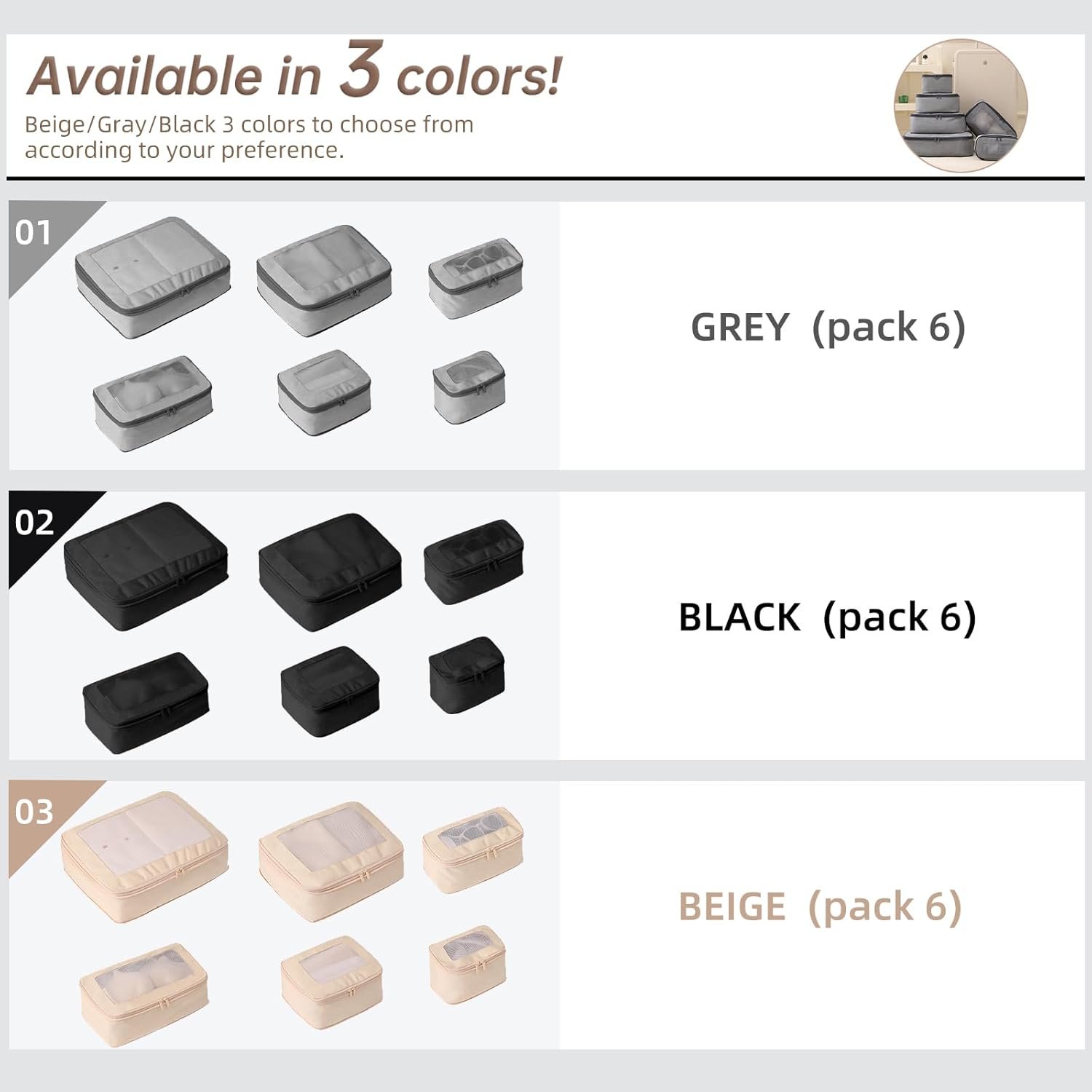 【6 PIECES TRAVEL ESSENTIALS】 Available in 3 colors for you to choose from, including 6 different sizes compression packing cubes, you can pack all your luggage items into a carry-on or suit bag, these compression packing cubes are also a perfect gift for travelers, yourself, friends or relatives.