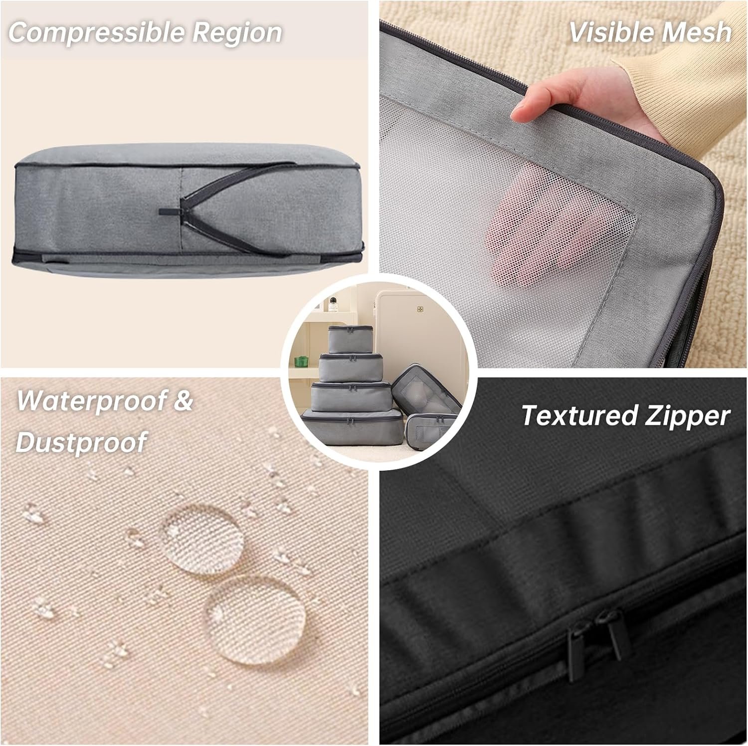 Compression Packing Cubes for Travel 2/4/6 sets, Large Travel Packing organizers for Carry on Luggage, Storage Bags for Backpacking, Suitcases