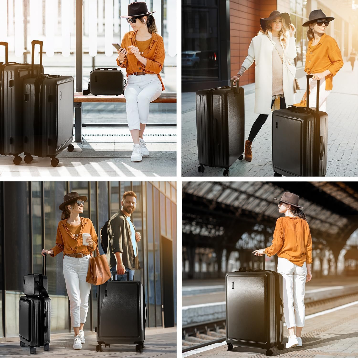 TravelArim’s 4-Piece Luggage Set is designed to accommodate all your travel needs. The suitcase interiors boast large, zippered compartments with generous packing dimensions, and the carry-on bag includes an insulated food pocket, padded laptop pocket and iPad pocket, and power bank pocket integrated with exterior USB port for convenient device charging. Telescoping handles and spinner wheels provide smooth, 360-degree movement, and the hard shell exteriors with beveled sides provide impact resistance. This set includes a bonus Cosmetic Case, perfect for keeping toiletries and valuables easily accessible, that fits over the handle of the carry-on suitcase.