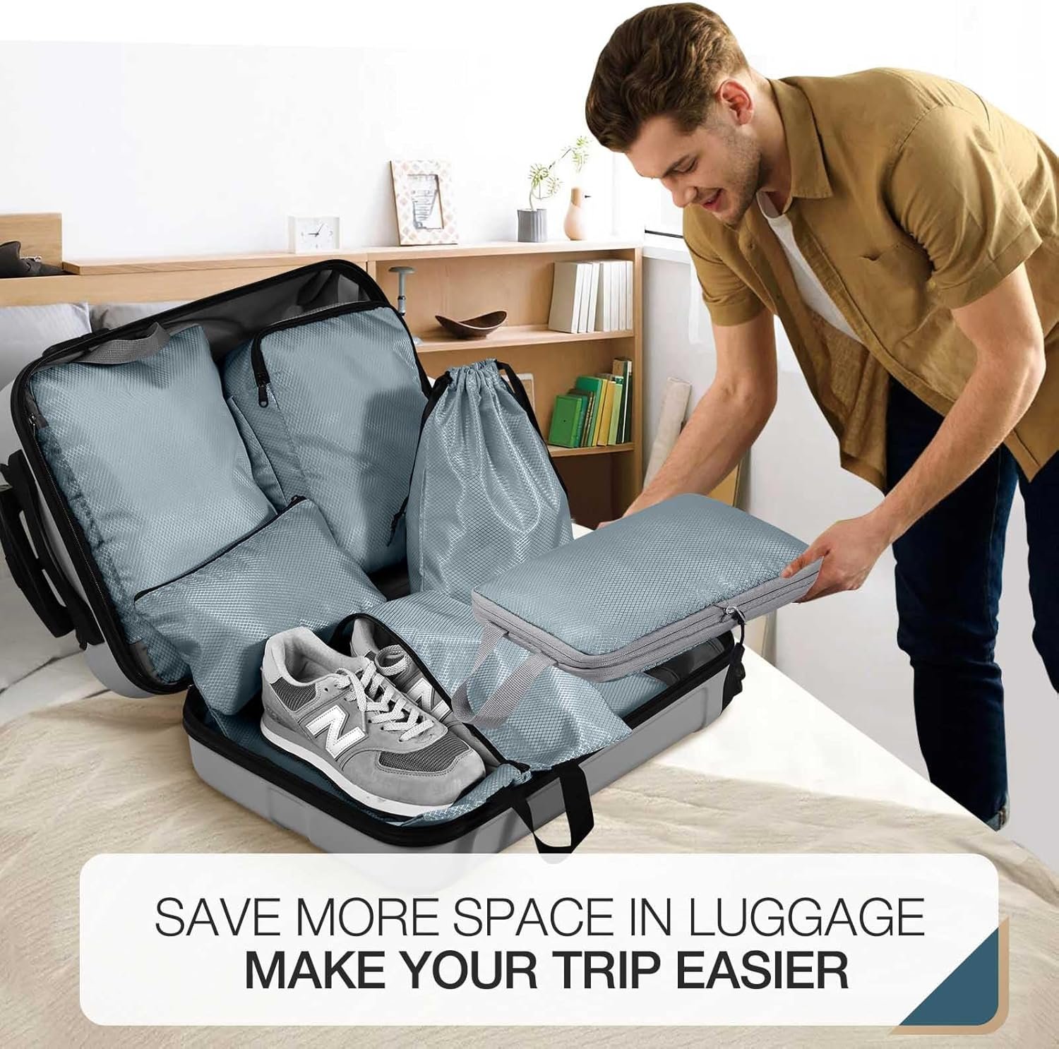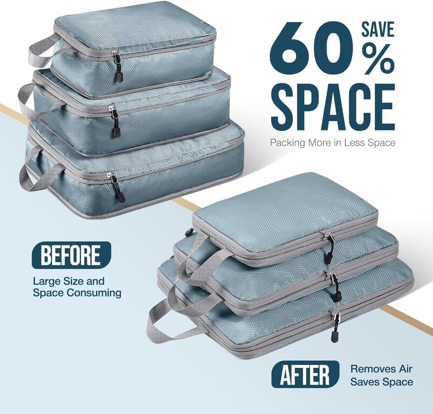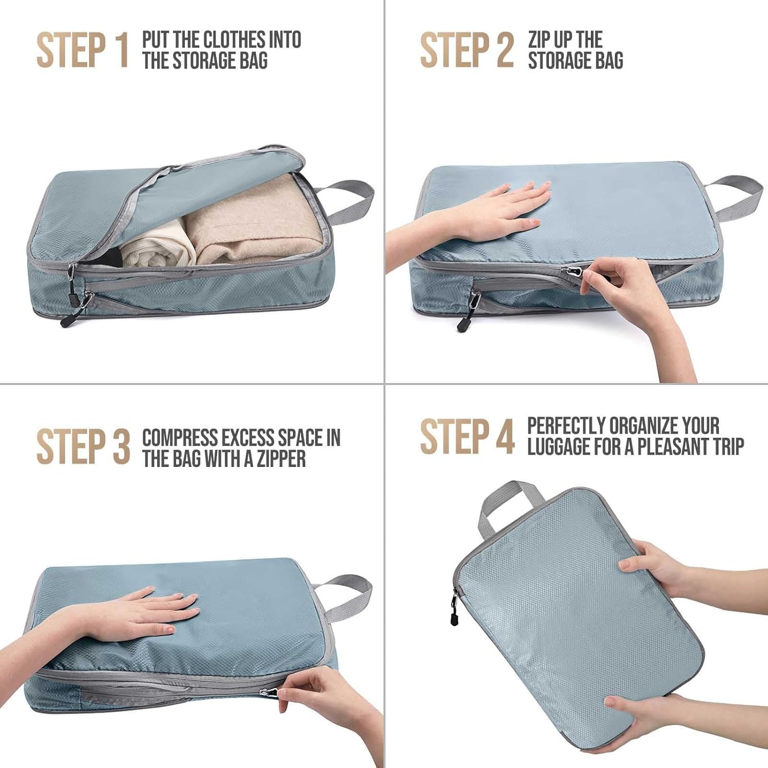 Free up more space: no waste of luggage space, multi-size combination is completely suitable for carry-on luggage. Each compression bag has an extra zipper to help you compress clothes, maximize the luggage space, and allow you to store more luggage and equipment.