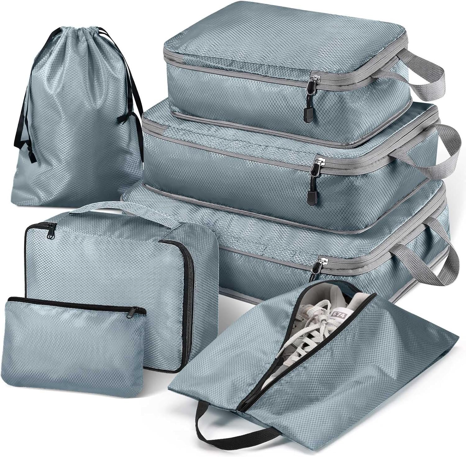 Hommtina Compression Packing Cubes for Suitcases, 7 Set Travel Organizer Cubes for Women/Men (Gray)