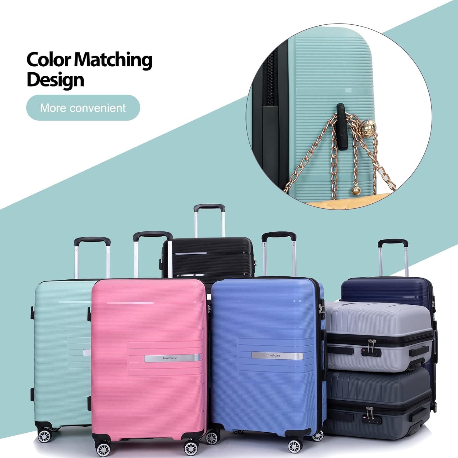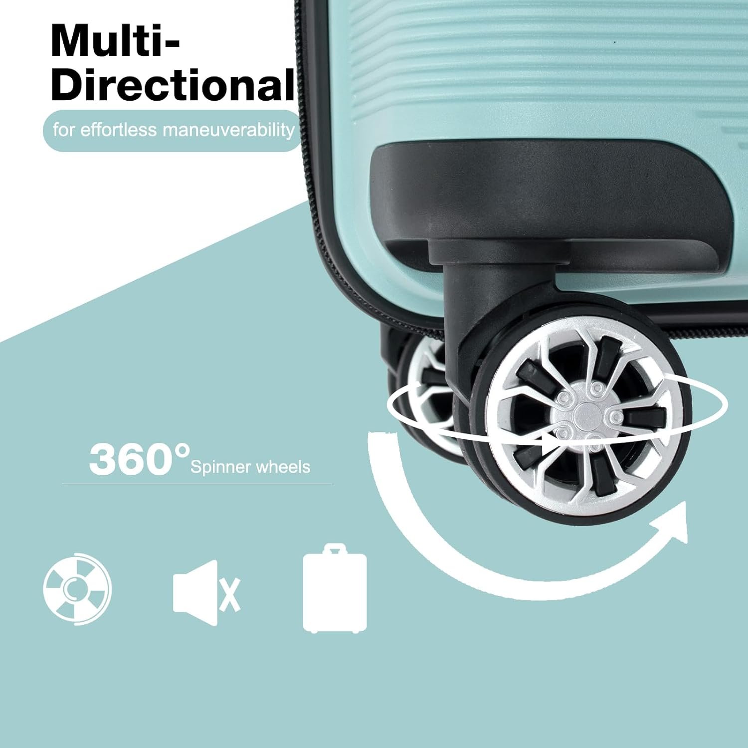 【Suitcases With Double Spinner Wheels】: Luggage moves very silent and smoothly with 360°rotate double wheels. Four 360-degree multi-directional spinner wheels for effortless mobility, using new soft TPU and lubricating balls inside wheels