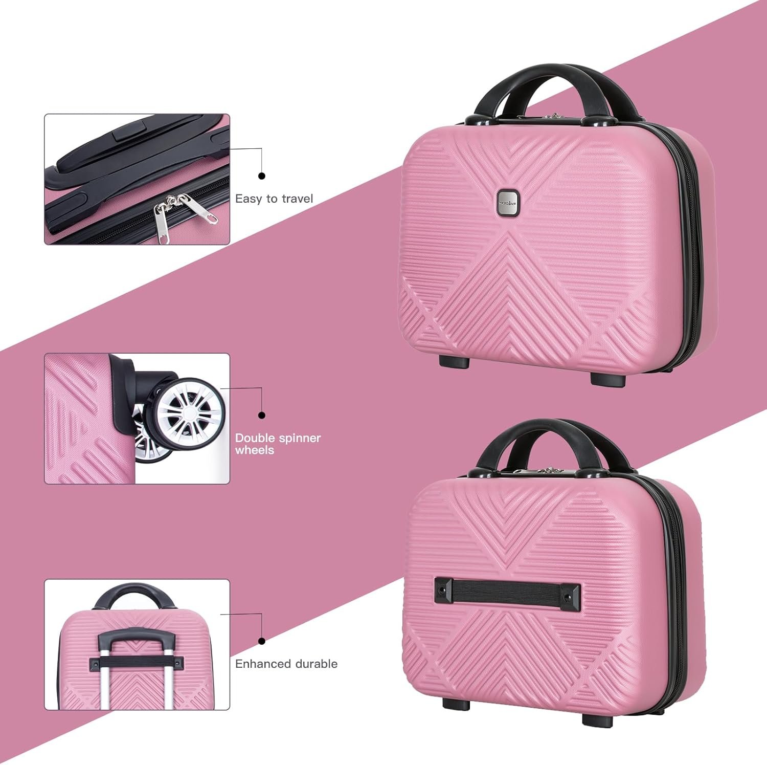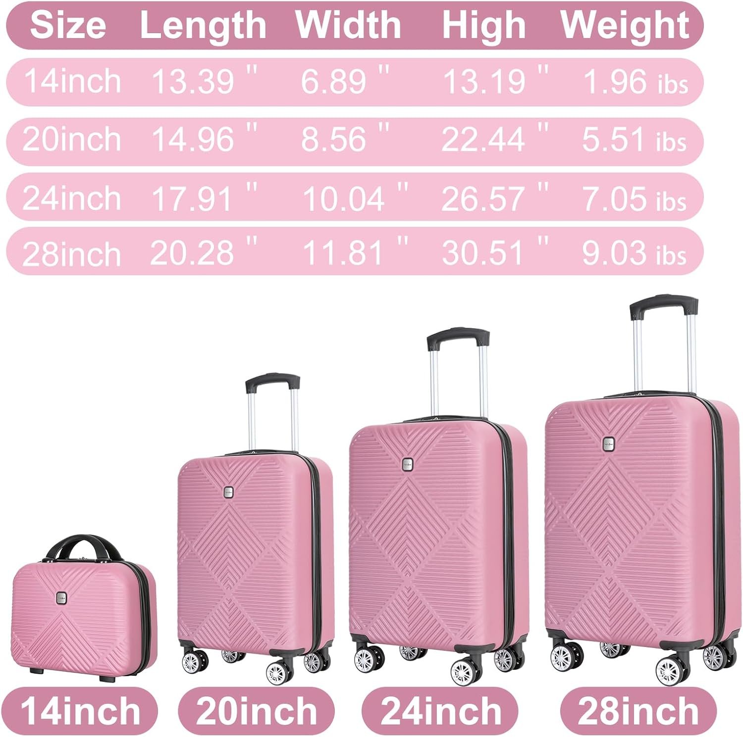 Luggage 4 Piece Set, Hardshell ABS Suitcase Set with Double Spinner Wheels, Lightweight Durable Large Luggage set, Carry On and Checked Travel Luggage, Pink