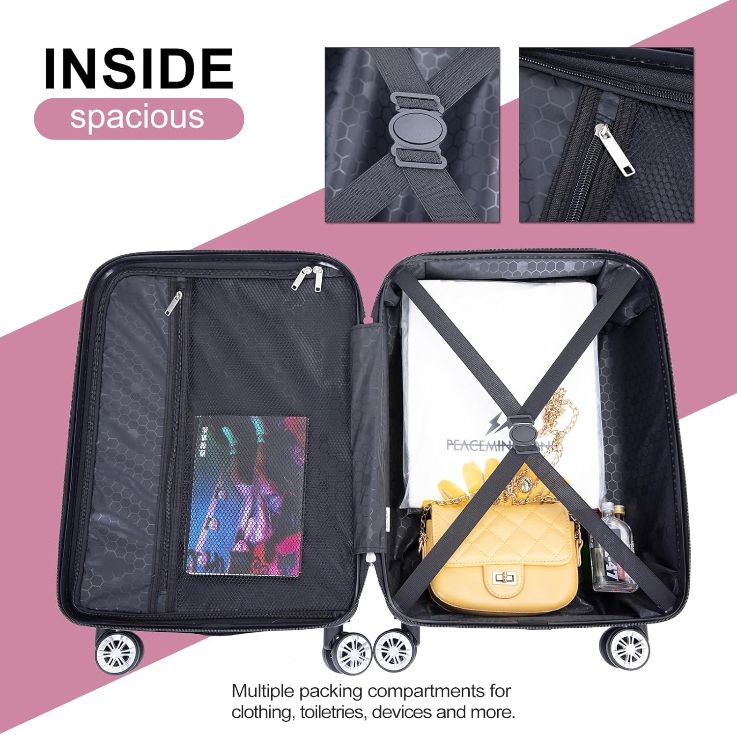 【Suitcase with Spinner Wheels】: Suitcases with spinner wheels can help save your strength and make your suitcase lighter. Multidirectional smooth and silent 360 ° spinner wheels offer effortless mobility in any direction. The double-wheel design is more durable