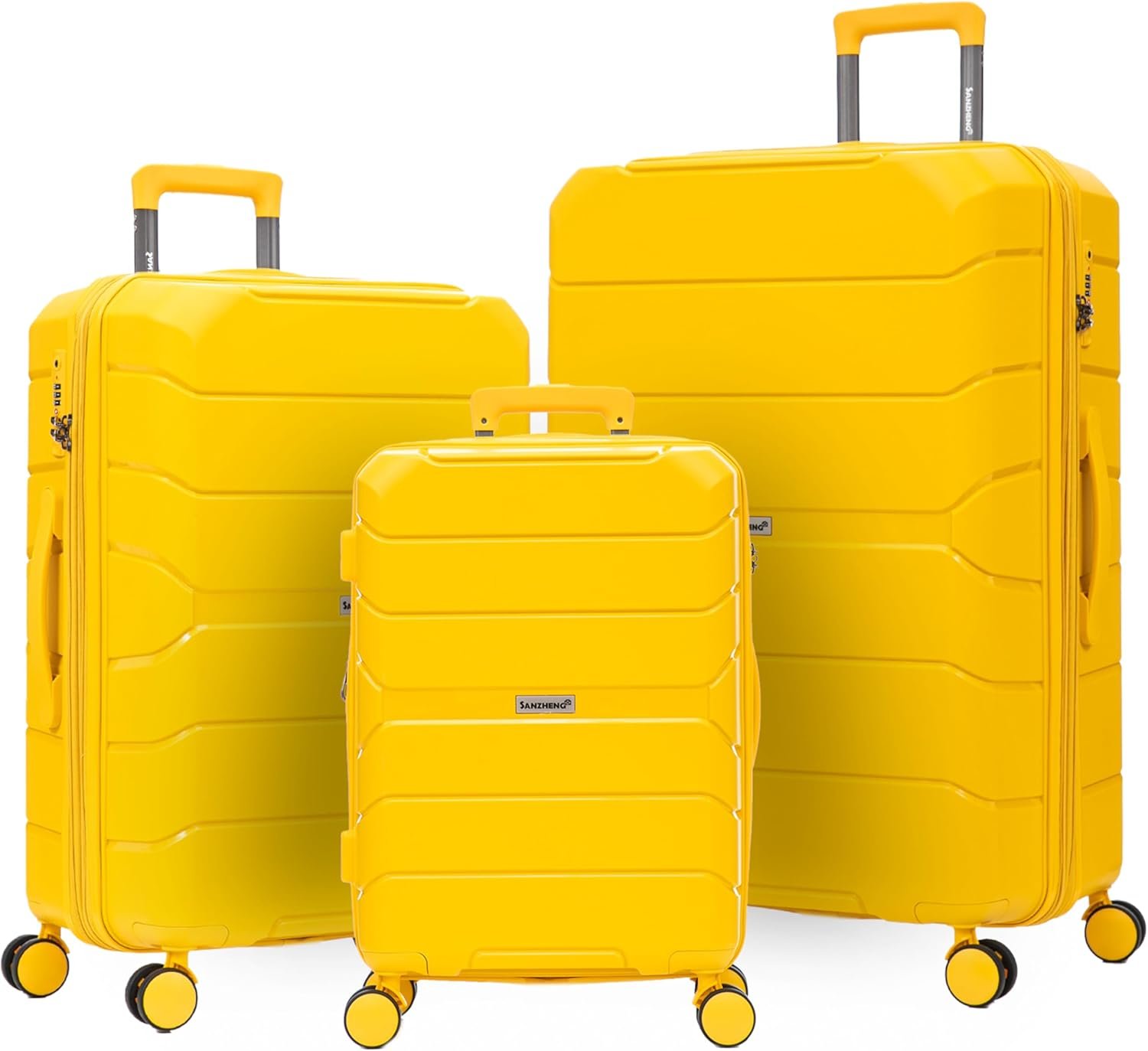 Luggage Set 3 Piece 100% PP Heavy Duty Hardside Expandable Suitcase Set with TSA Lock Double Spinner Wheels (20/24/30 inch, Yellow)