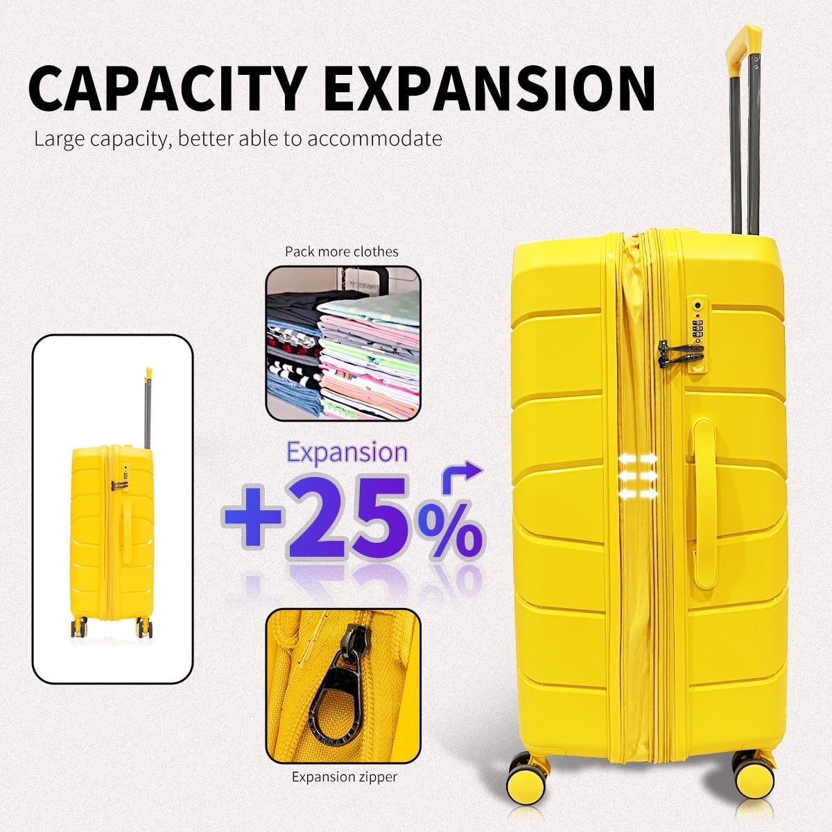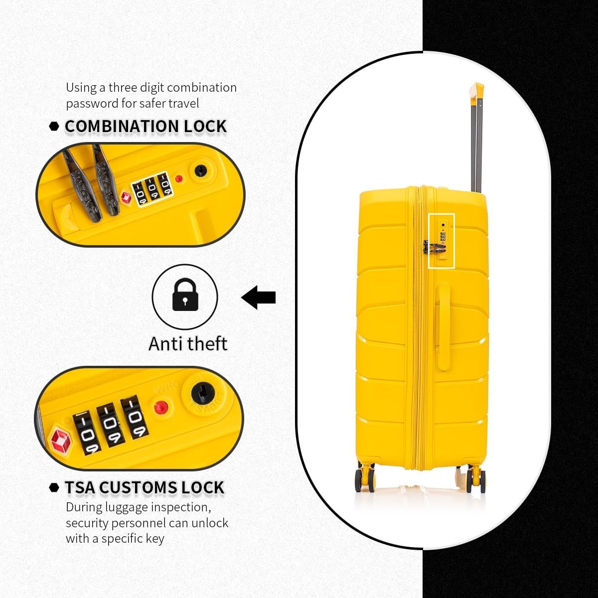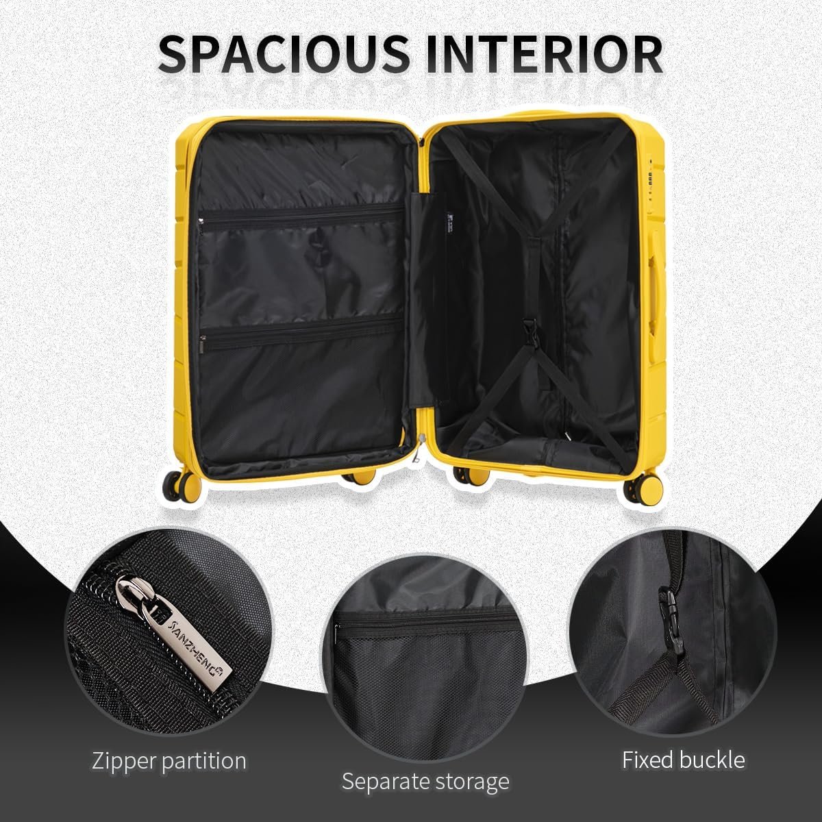 Be the first to review “Luggage Set 3 Piece 100% PP Heavy Duty Hardside Expandable Suitcase Set with TSA Lock Double Spinner Wheels (20/24/30 inch, Yellow)”