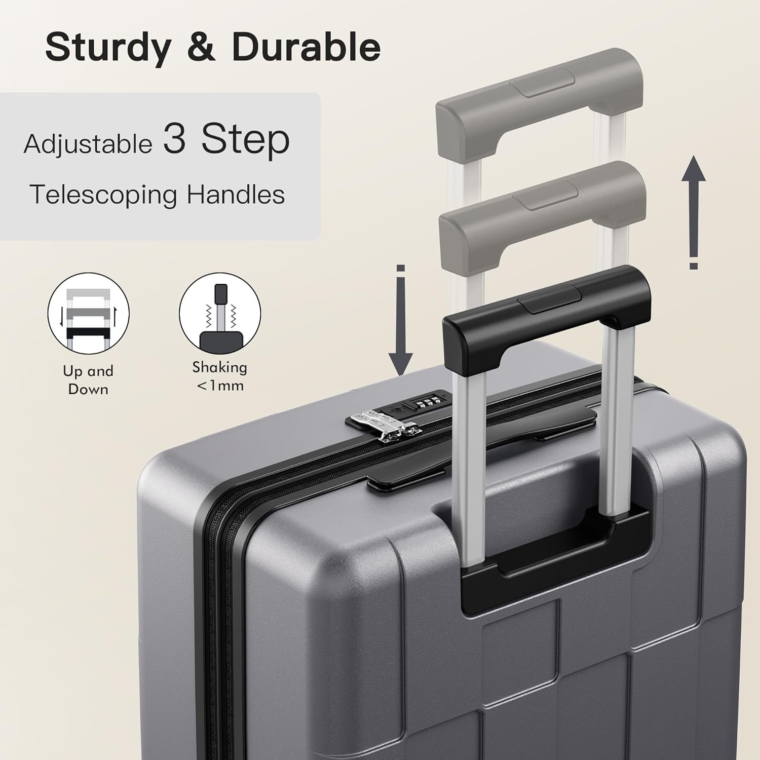 Ultra-Durable & Lightweight PC Luggage Sets: This premium luggage features a 100% polycarbonate (PC) shell that masterfully blends rugged durability with lightweight comfort. The aerospace-grade PC material provides exceptional impact resistance to withstand rough baggage handling, while maintaining a remarkably light frame that’s 20% lighter than traditional luggage.