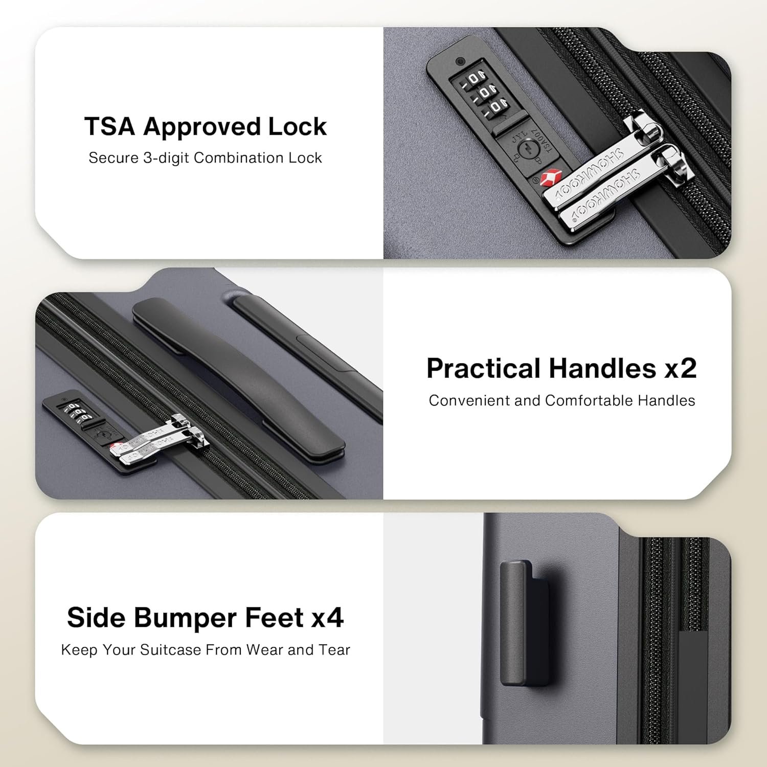 Luggage with Secure Tsa Lock: The TSA lock on the top of the suitcase can be freely set with a 3-digit password. Only customs personnel have the key to open the suitcase for inspection, which prevents violent opening of the suitcase and provides reliable protection for your travel.