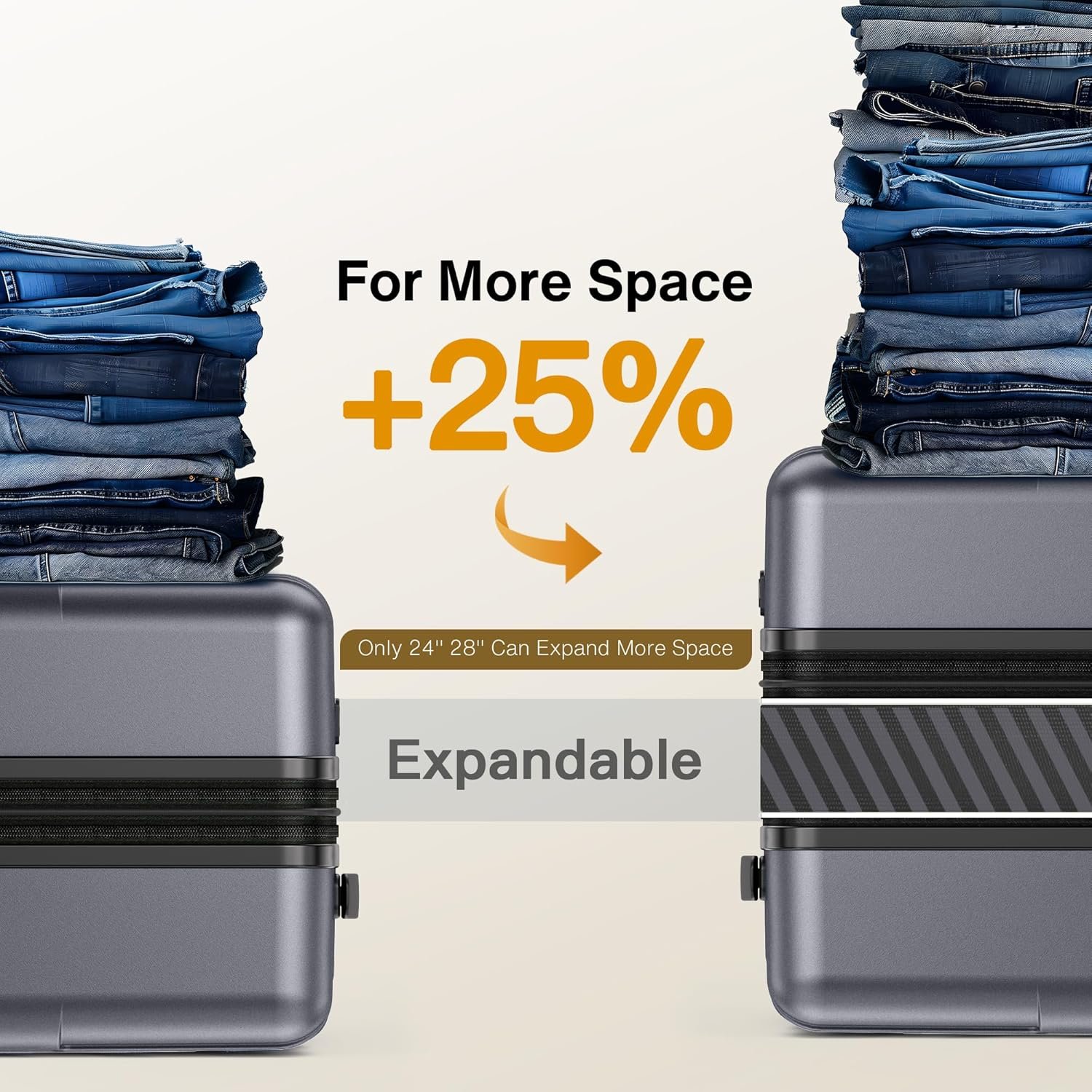 Durable YKK Zipper & Expand 25%: Featuring YKK high-strength anti-burst zippers, rigorously tested for 100,000 cycles without failure—ensuring smooth operation and zero risk of zipper jams or splits, even under extended travel use. Use the expandable zipper, the suitcase easily releases an additional 25% of its capacity, maximizing your packing flexibility (Only 24in & 28in).