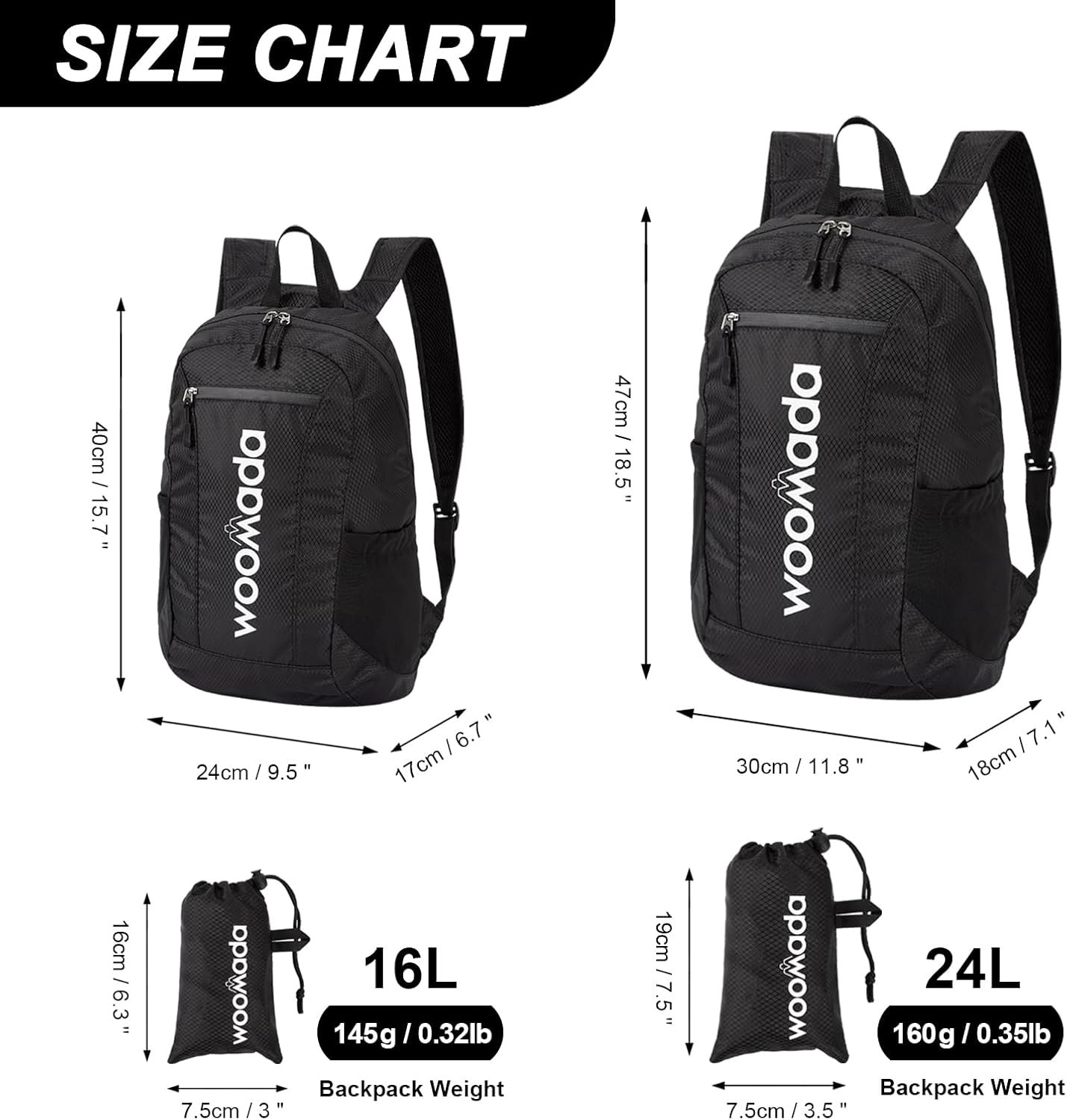 WOOMADA 16L Ultra Lightweight Packable Water Resistant Travel Hiking Backpack Daypack Handy Foldable Camping Outdoor Backpack